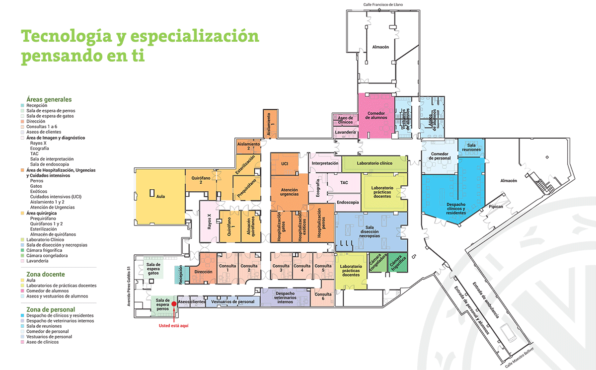 El Hospital Veterinario UCV es un centro veterinario de vanguardia ubicado en la Avenida Pérez Galdós, 51 de la ciudad de Valencia. Disponemos de magníficas instalaciones en un entorno profesional agradable, confortable y cercano para nuestros pacientes y sus familiares.